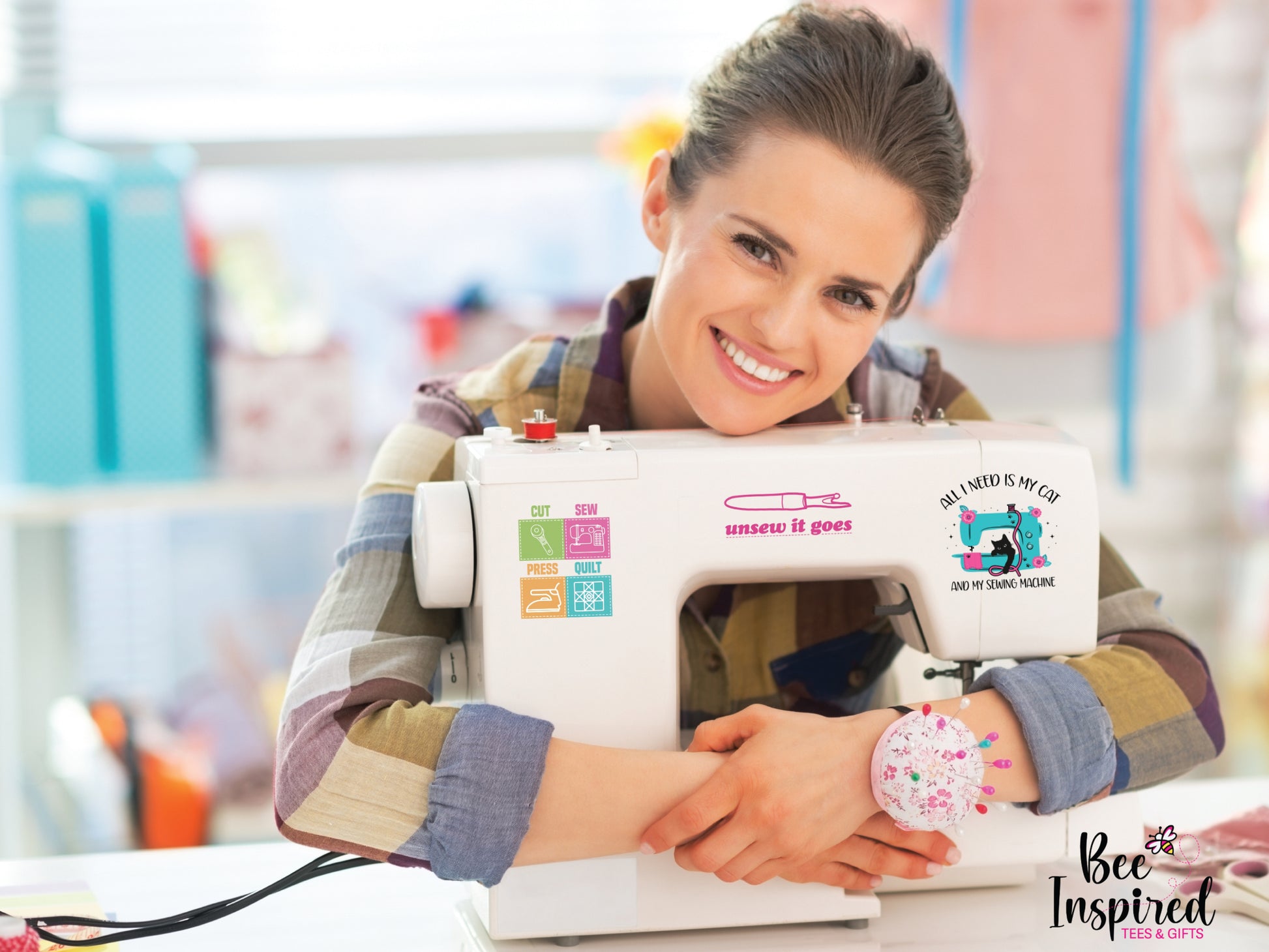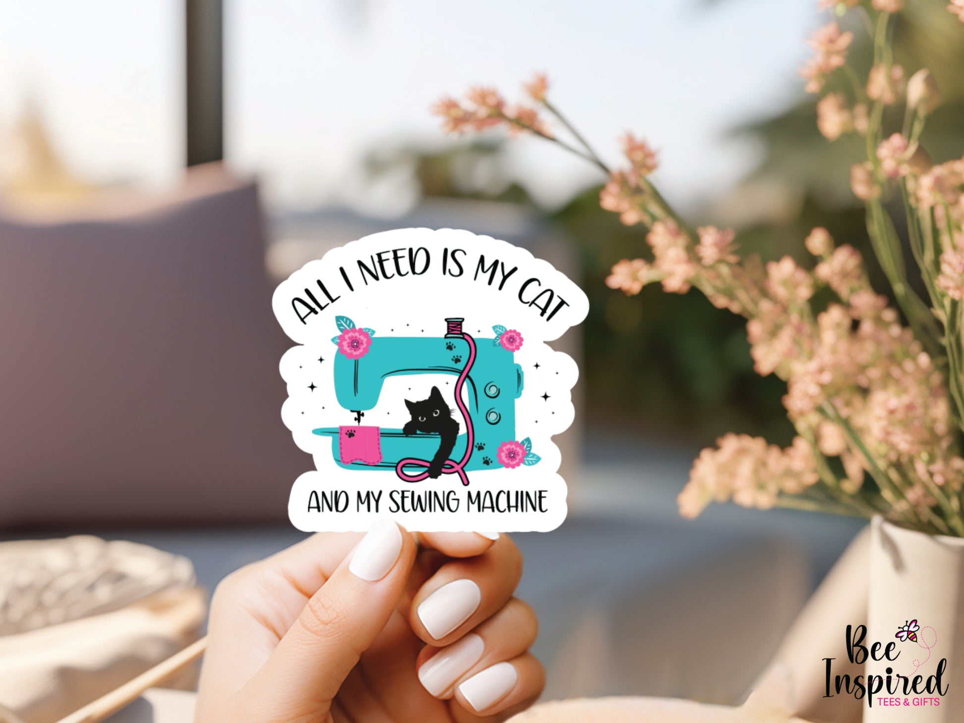 For those who find joy in stitches and furry friends, the "All I Need Is My Cat & My Sewing Machine" sticker is a must-have!