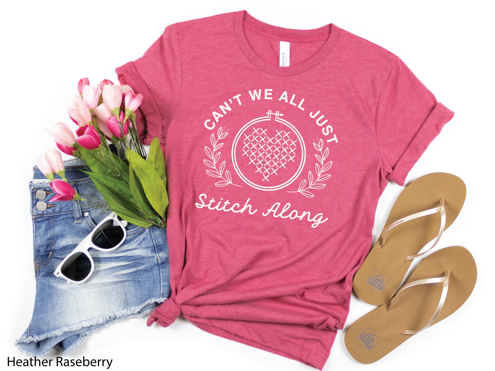 Bring a little peace, thread, and harmony to your stitching circle with this charming, soft t-shirt. Featuring the playful phrase "Can’t We All Just Stitch Along," it’s perfect for cross stitchers who love sharing threads, laughs, and stitchy inspiration. Made for casual stitch sessions, craft fairs, or even your next stitching retreat—where you’ll be comfy, cute, and totally in sync with the vibe.