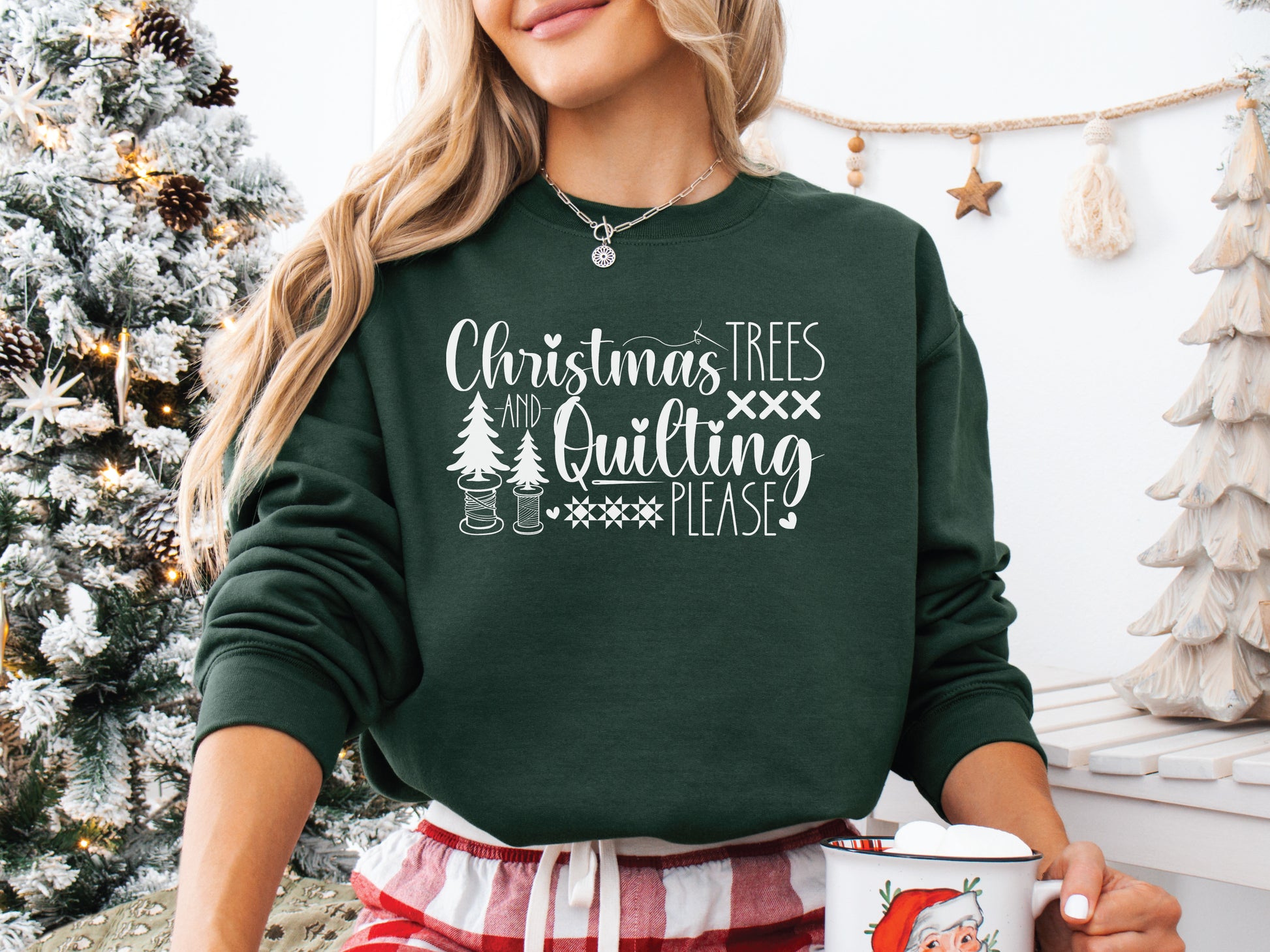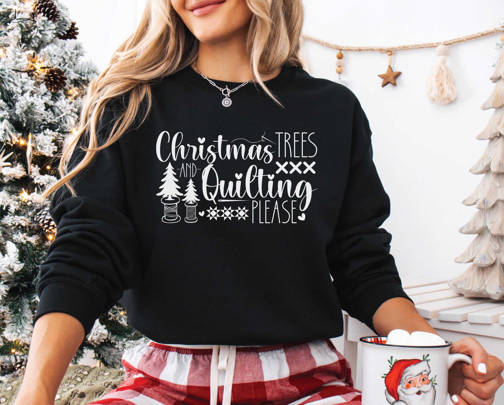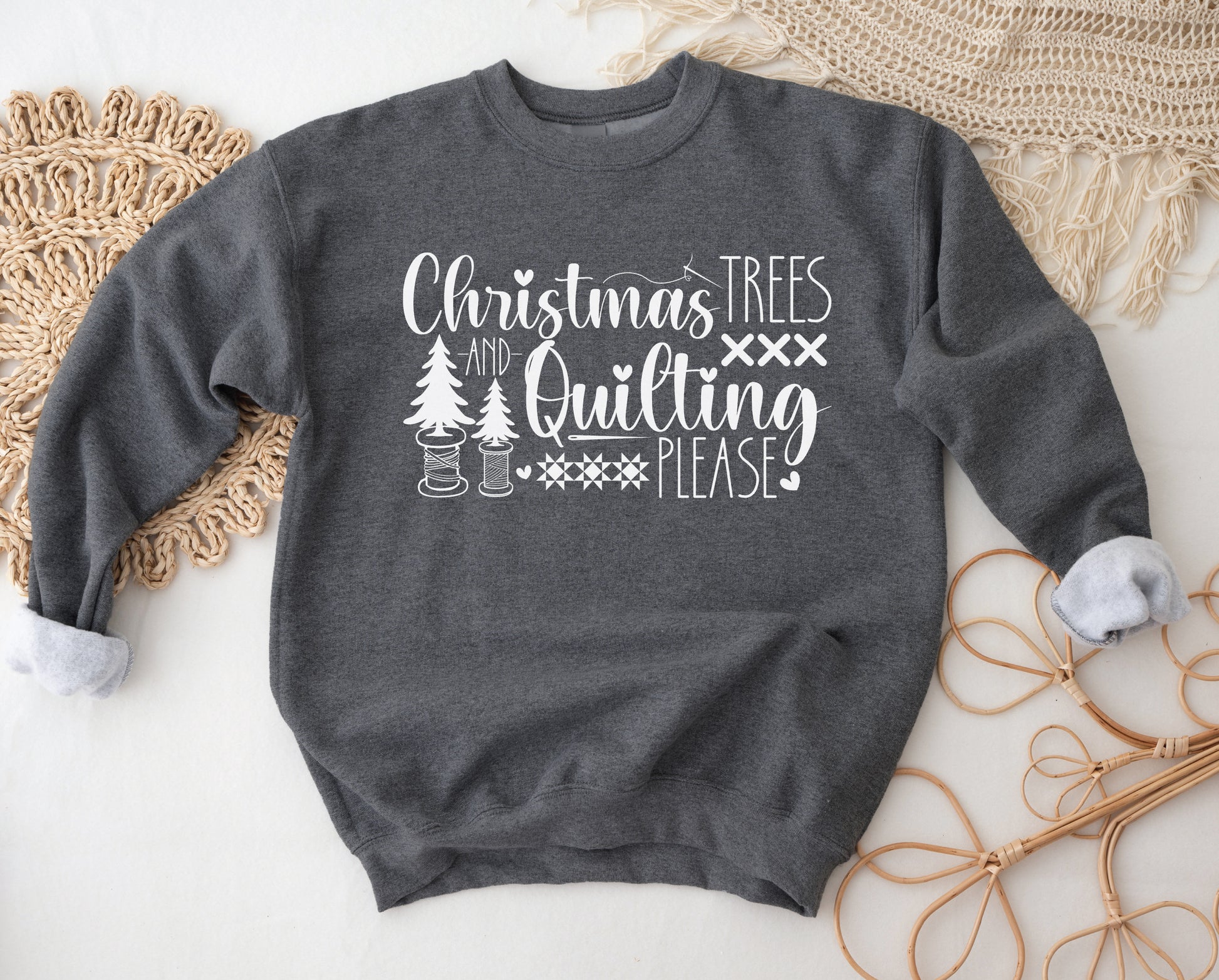 Get ready for a creative and cozy Christmas with this "Christmas Trees & Quilting" sweatshirt. The festive phrase is a fun nod to your favorite hobby, making it ideal for holiday quilt retreats, gift exchanges, or simply enjoying the season with fellow quilters.