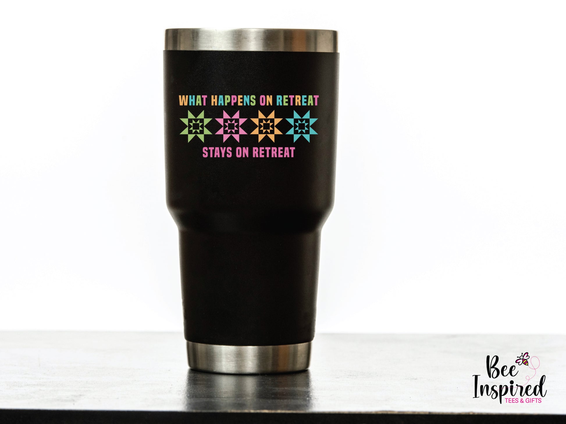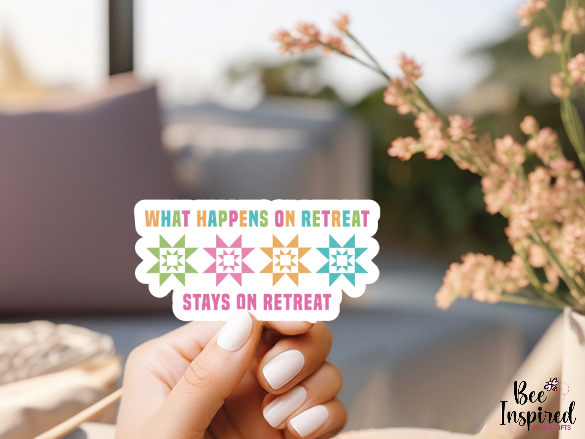 For quilters who know the golden rule of retreat, the 'What Happens on Quilt Retreat, Stays on Quilt Retreat' sticker is a must-have! Perfect for quilting enthusiasts who embrace the magic and mischief of retreat time.