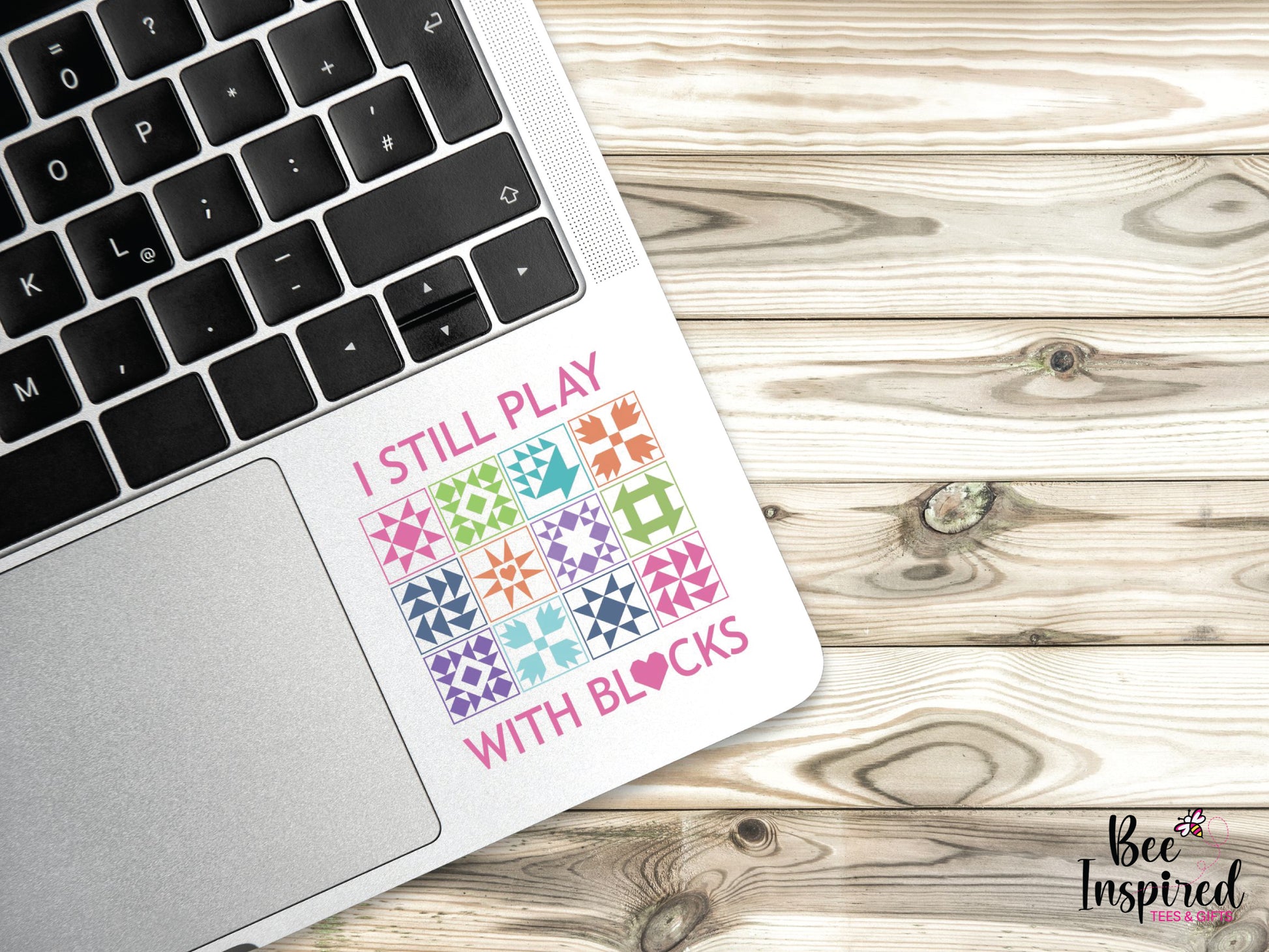 Celebrate your love of quilting with the “I Still Play With Blocks” vinyl sticker! Featuring twelve colorful quilt block designs, this durable, waterproof sticker adds a vibrant touch to your sewing machine, water bottle, laptop, or craft space. The clear background blends seamlessly onto any surface, making it a playful and stylish nod to your quilting passion. Whether as a gift for a fellow quilter or a fun addition to your collection, this sticker is a perfect way to showcase your love for the art of quilting!