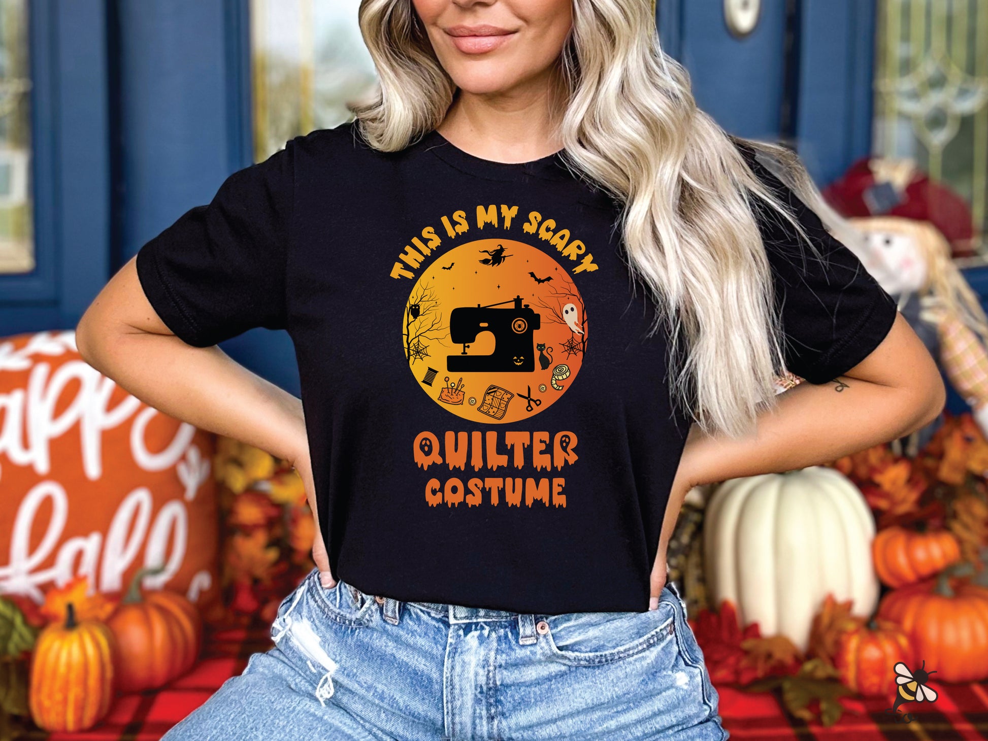 This Halloween t-shirt brings humor to the season, offering a lighthearted 'costume' for quilters who want to keep things simple. It's ideal for those who would rather spend their time quilting than dressing up. Perfect for the quilter who likes some spooky vibes this season!