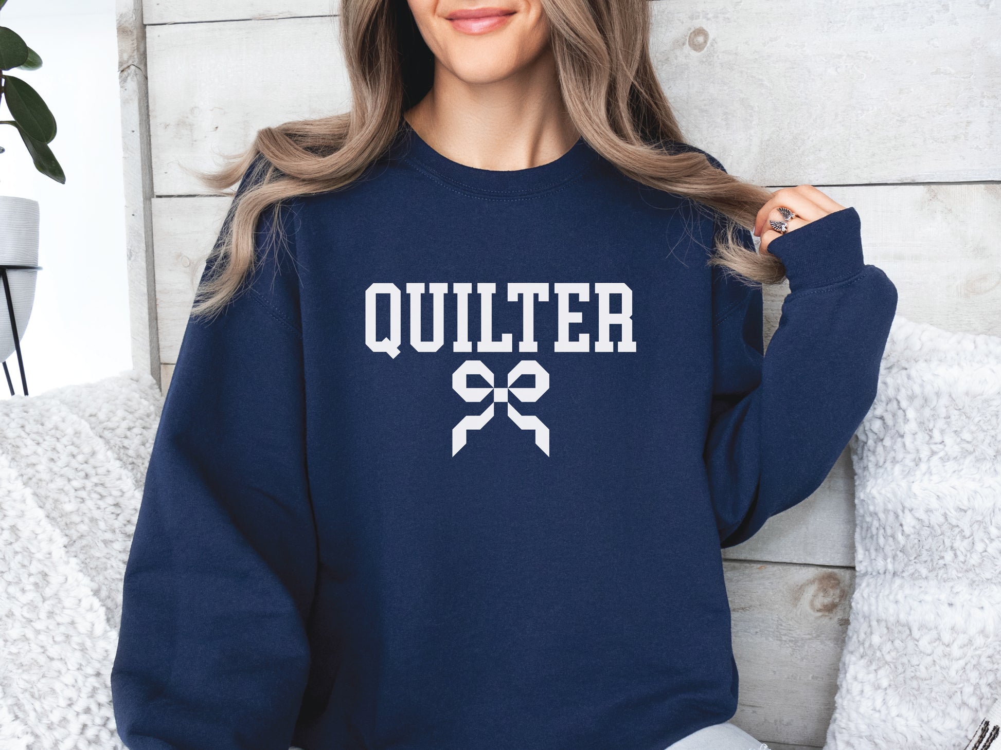 Show off your quilting pride with this Quilter sweatshirt! Featuring bold varsity-style lettering with a quilty coquette bow, this design is both stylish and meaningful for makers. Perfect for the holiday season or year-round wear, this soft and cozy sweatshirt is great for quilt retreats, guild meetings, or relaxing sewing days at home.