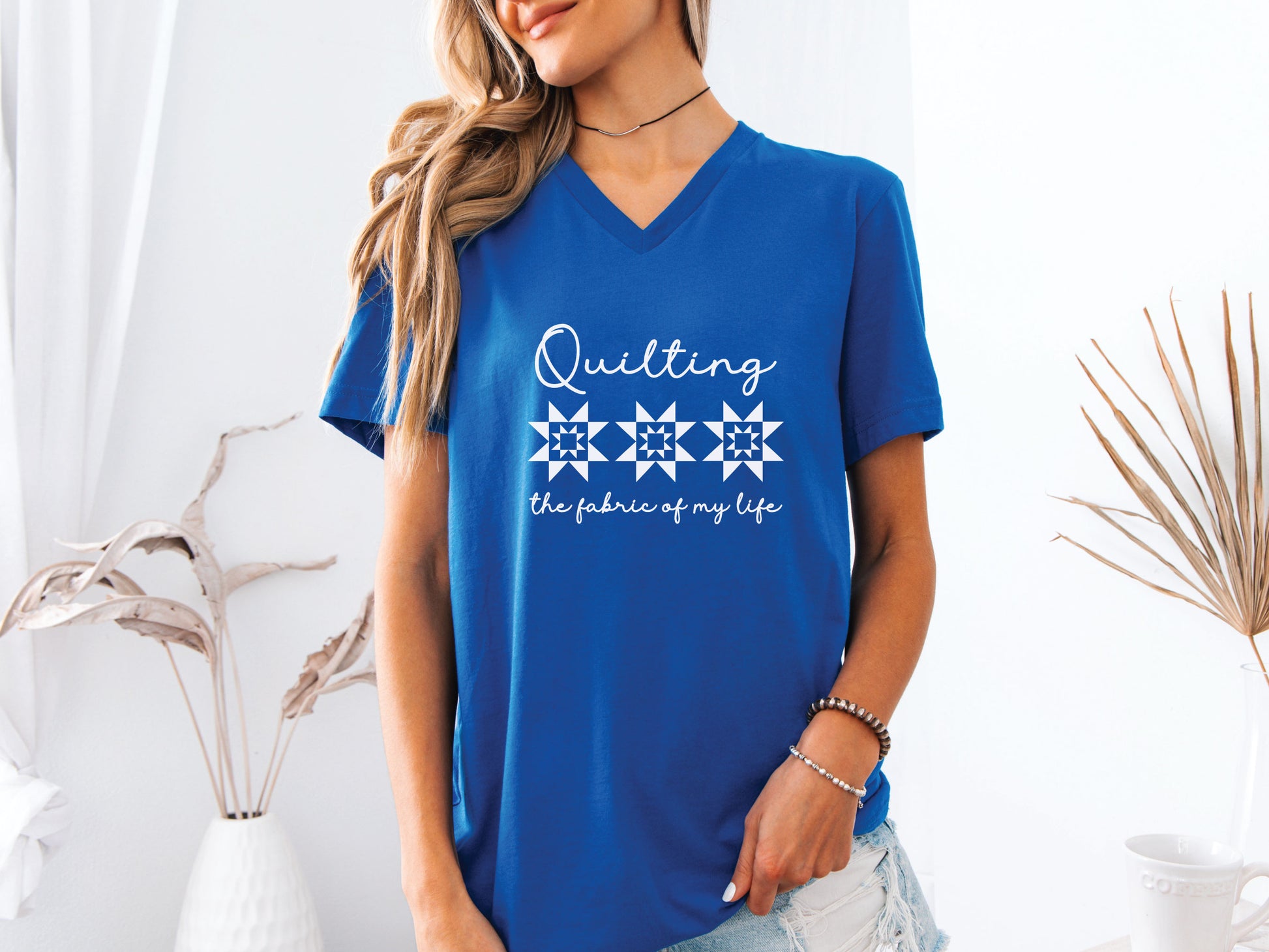Quilting The Fabric of My Life V-Neck T-Shirt