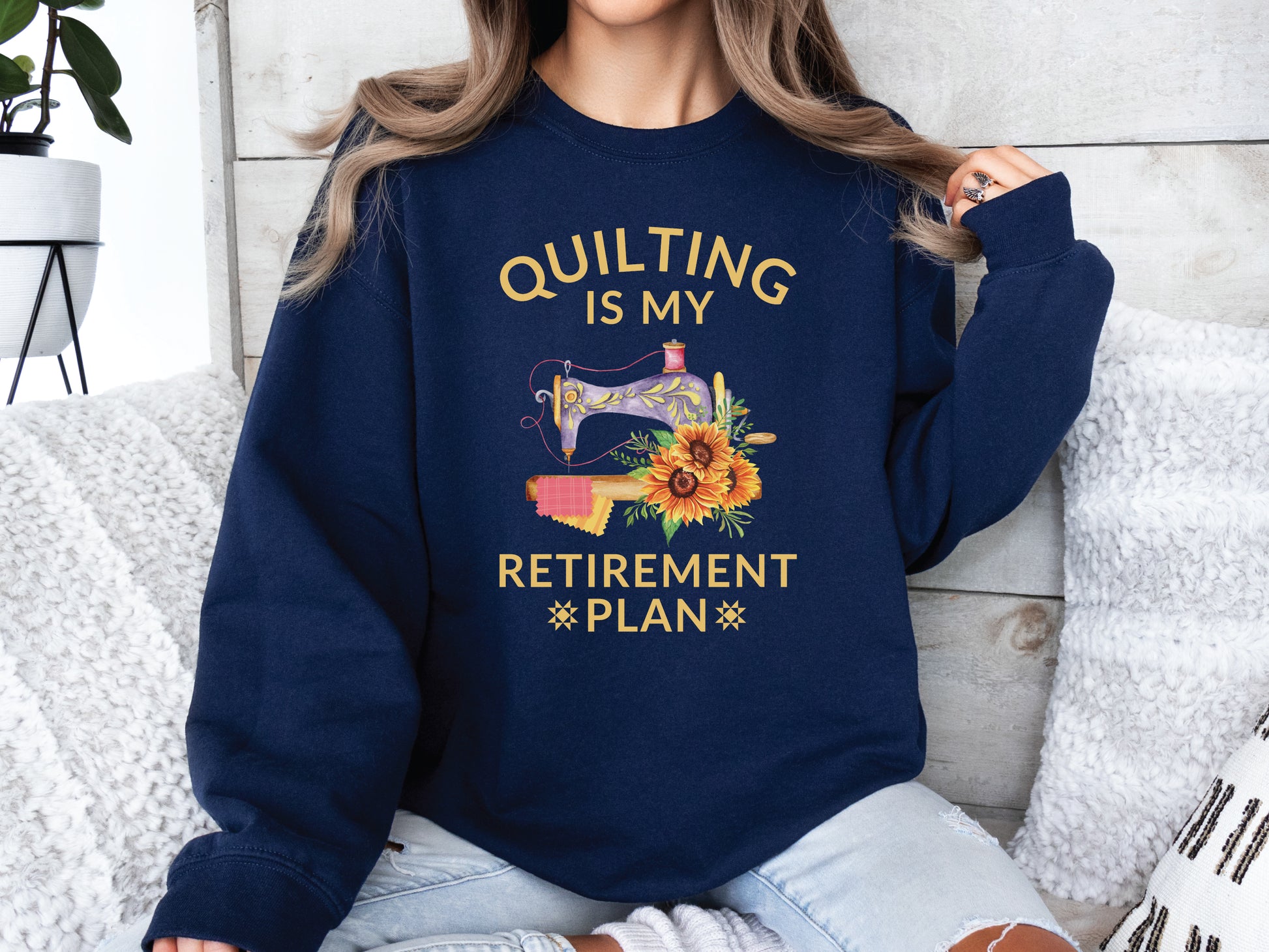 Stay cozy and creative with this long-sleeve unisex sweatshirt that proudly declares your post-work priorities: Quilting Is My Retirement Plan. Whether you're stitching at a guild meetup, relaxing at a retreat, or sewing the day away at home, this comfy sweatshirt is your perfect companion. No alarms, no deadlines—just fabric, freedom, and a whole lot of thread.