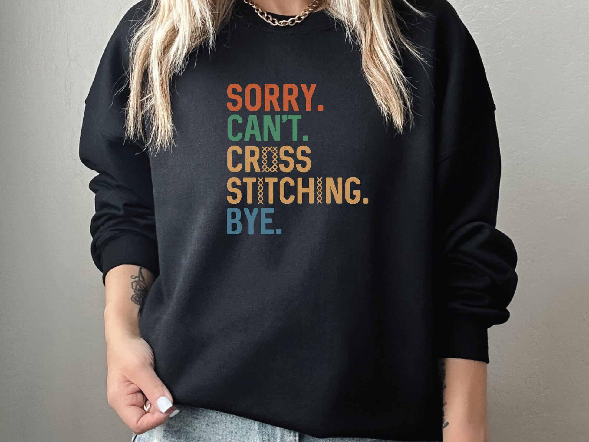 Cross Stitch Sweatshirt: Sorry Can't Cross Stitching Bye