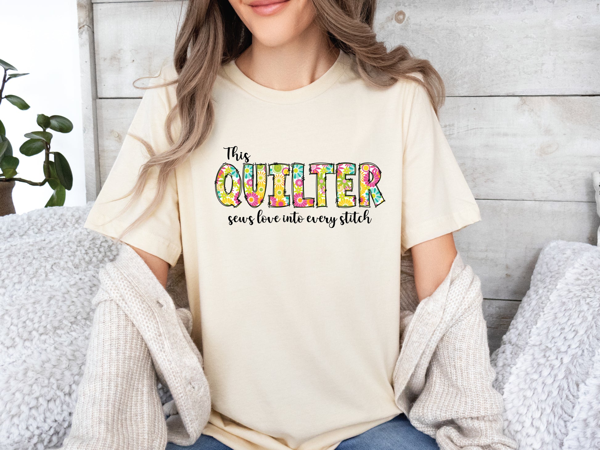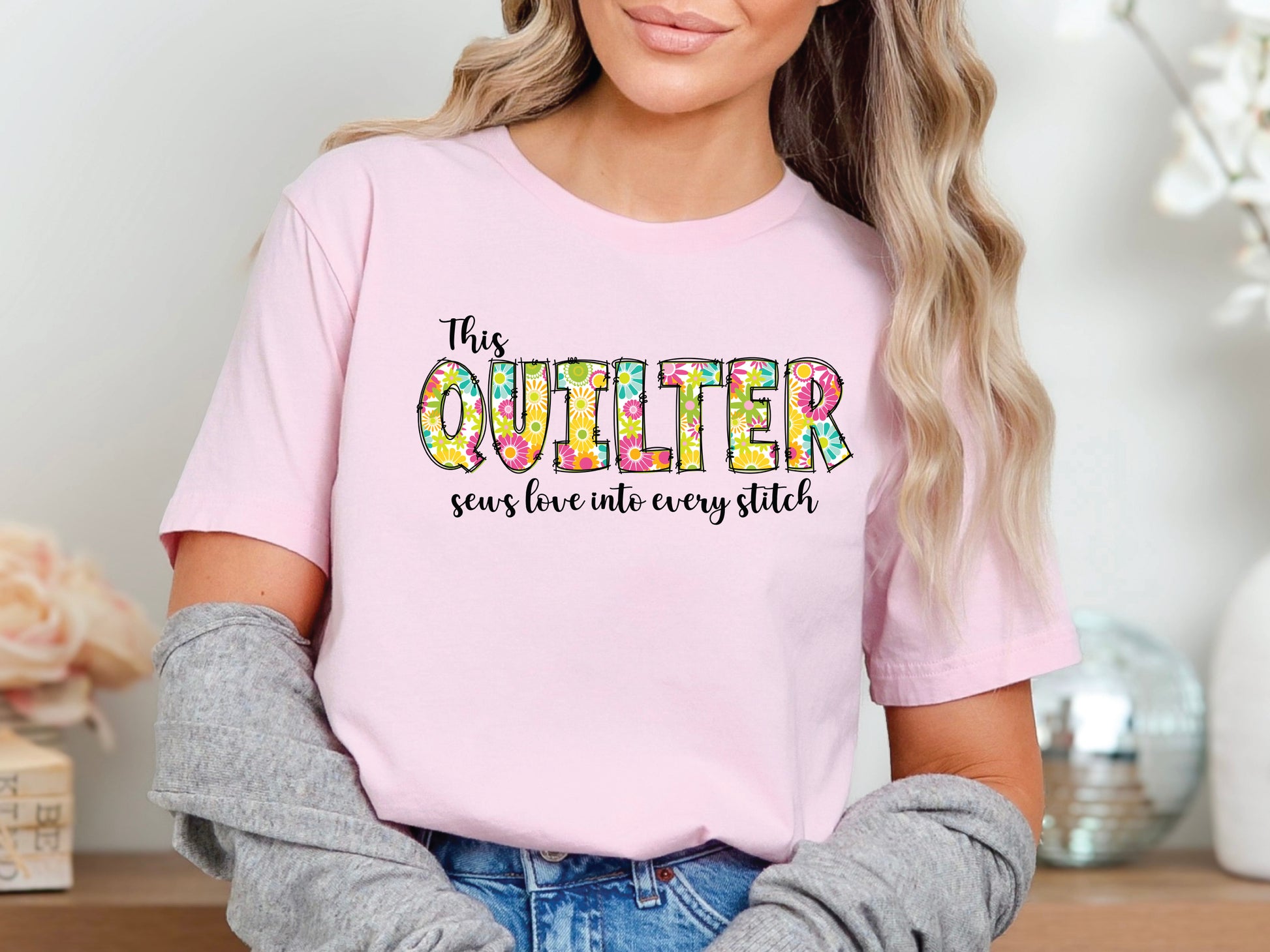 With bright summer floral hues and the sweet sentiment "This Quilter Sews Love Into Every Stitch," this tee is perfect for quilters who pour their hearts into every project. This soft lightweight t-shirt is perfect for long sewing sessions, quilt retreats, or simply showing off your passion for quilting.