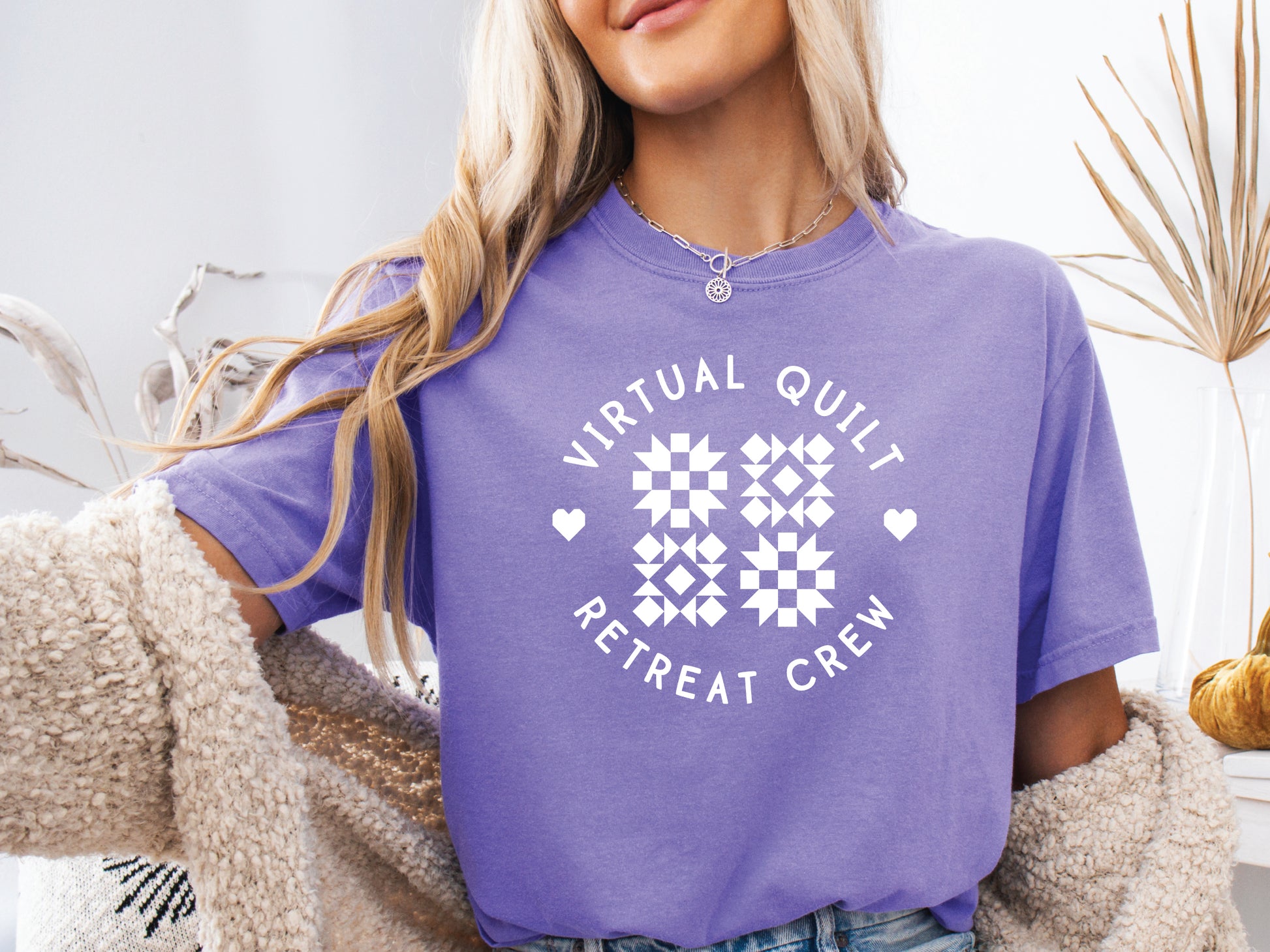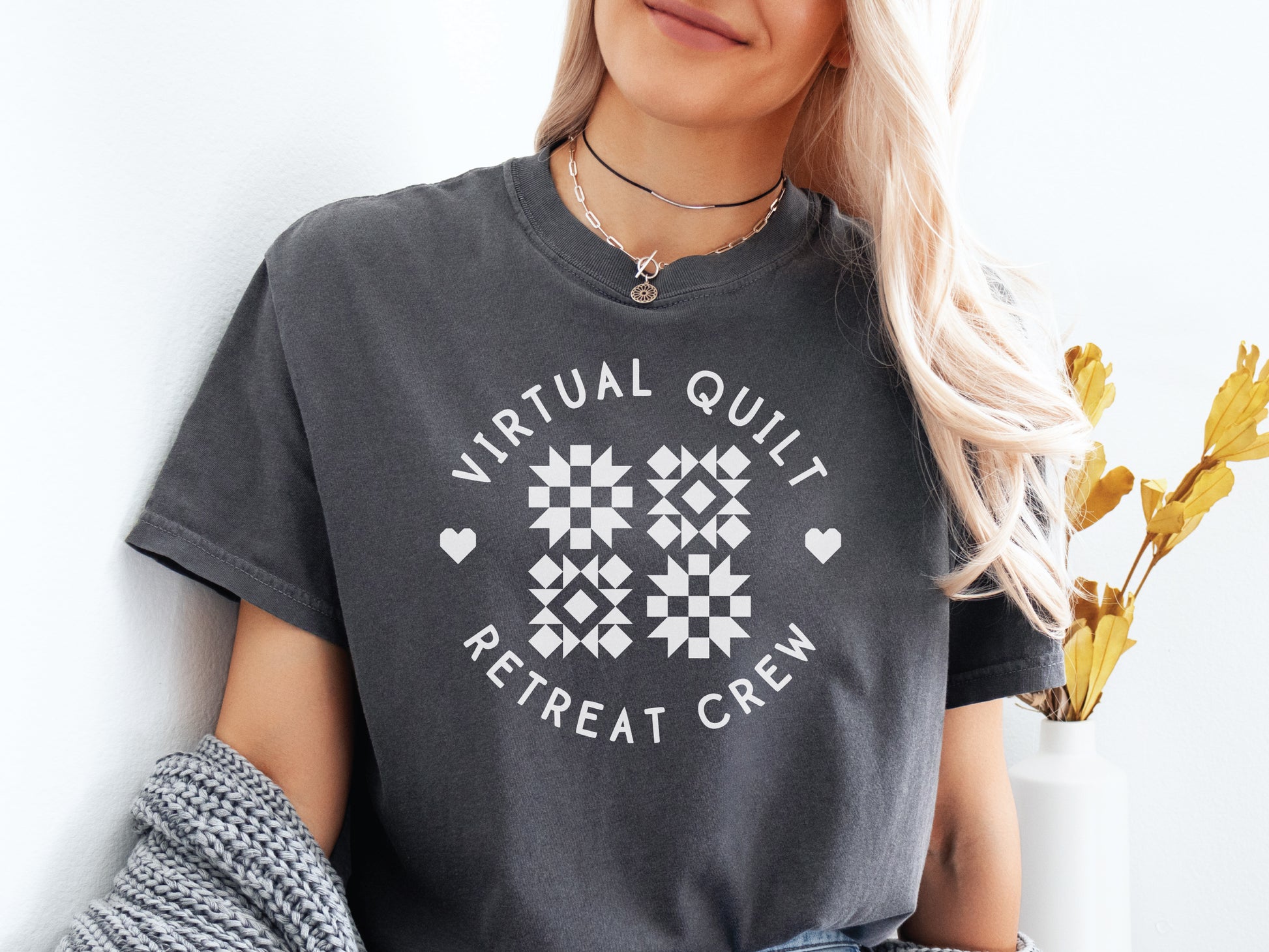 Quilting from home never looked so good! This Virtual Quilt Retreat Comfort Colors® T-shirt lets everyone know you’re part of the ultimate online stitching party. Sew, chat, repeat—no luggage necessary! A perfect way to celebrate creativity, connection, and of course, lots of fabric fun!